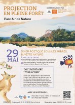 Un second temps associant sensibilisation au vivant et convivialité s’est également organisé avec cinq acteurs locaux, le 29 mai, à Air de nature. Un format inédit sur le territoire : une soirée projection en plein forêt du documentaire « Vies à Vies » qui est une invitation à découvrir au fil des saisons le monde vivant qui nous entoure… à nous familiariser avec nos voisins animaux… à nous interroger sur notre manière de vivre ensemble... Une projection qui s’est accompagnée d’un dîner nature, d’une buvette engagée avec des produits locaux, mais aussi d'un échange dynamique et d'une animation avec le réalisateur, naturaliste et chercheur au CIRAD de Montpellier, Nicolas Gaidet, et l'animateur nature secoueur de cocotier, Laurent Marseault.